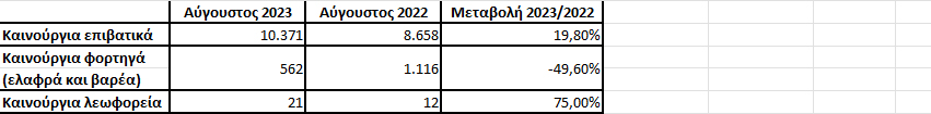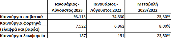 Αύξηση παρουσίασαν οι ταξινομήσεις και το διάστημα από Ιανουάριο έως Αύγουστο. Η αύξηση στις νέες ταξινομήσεις Ι.Χ έφθασε το 25.3%,