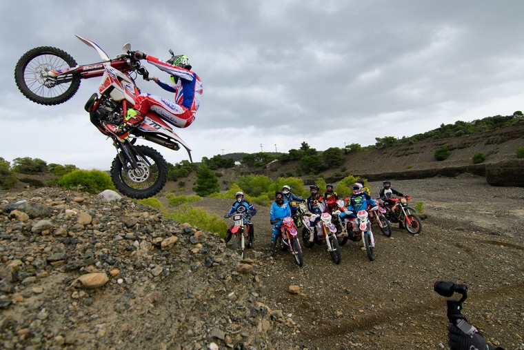 O 23 ετών εργοστασιακός αναβάτης της Beta πραγματοποίησε εντυπωσιακά περάσματα τόσο από την Enduro διαδρομή όσο και από την ειδική διαδρομή που είχε στηθεί δίπλα από τον χώρο των “paddock” για αυτόν τον σκοπό.