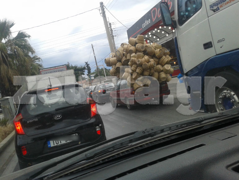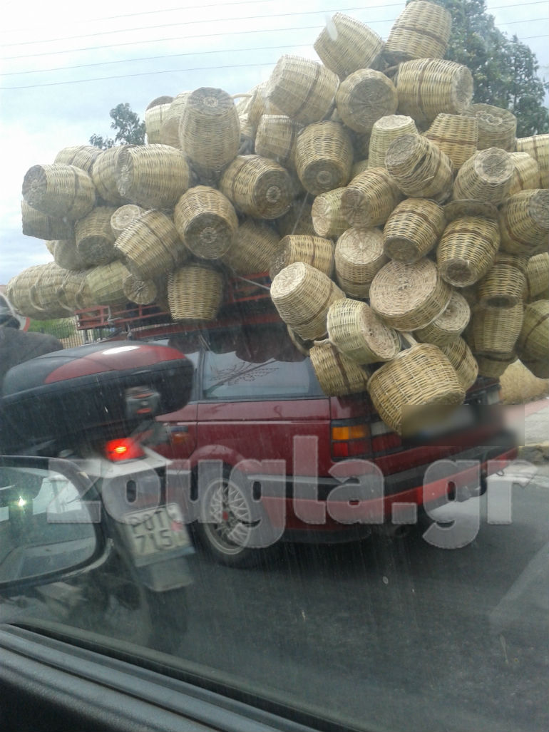 Στα φωτογραφικά στιγμιότυπα που ακολουθούν αποτυπώνεται ξεκάθαρα η στρεβλή νοοτροπία οδηγού, ο οποίος μετέτρεψε το όχημά του σε… φορτηγό προκειμένου να μεταφέρει τα καλάθια… που σχηματίζουν βουνό στον προορισμό τους.