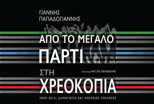 Στα ερωτήματα αυτά, και σε πολλά άλλα για τις αιτίες και τις ρίζες της κρίσης, επιχειρεί να δώσει απαντήσεις το νέο βιβλίο του δημοσιογράφου Γιάννη Παπαδογιάννη, «Από το Μεγάλο Πάρτι στη Χρεοκοπία. 2009-2015: Δημαγωγία και μοιραίες επιλογές», που κυκλοφορεί από τις Εκδόσεις Παπαδόπουλος.