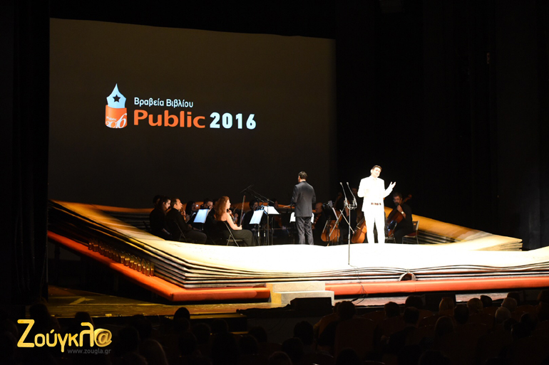 H επίσημη Τελετή Απονομής των Βραβείων Βιβλίου Public πραγματοποιήθηκε χθες, Τρίτη 24 Μαΐου 2016, παρουσία πλήθους κόσμου στην κατάμεστη αίθουσα του Θεάτρου Παλλάς. O μοναδικός θεσμός στην Ελλάδα, που δίνει βήμα στις προτιμήσεις του αναγνωστικού κοινού και τιμά το βιβλίο και τους δημιουργούς του, ολοκληρώθηκε φέτος για τρίτη συνεχή χρονιά.