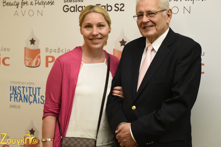 Η συγγραφέας Λίζα  Βάρβογλη & ο εκδότης Χρήστος Κασκαβέλης με το βραβείο στην κατηγορία Παιδική Λογοτεχνία