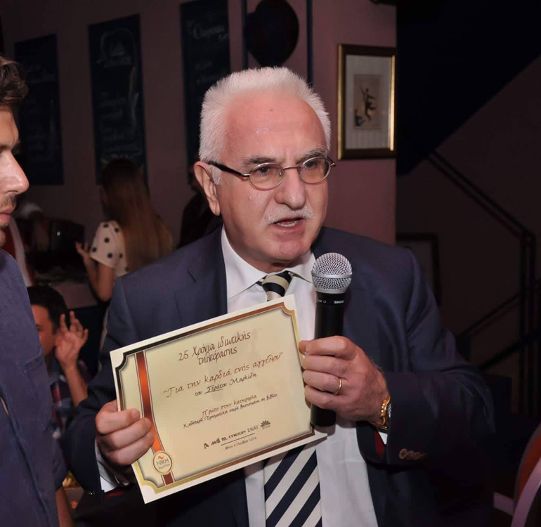 Ο Γιώργος Τσούκαλης μιλώντας για τη βράβευση του δήλωσε ότι το βραβείο του το αφιερώνει σε ένα παιδί άγγελο την Ασπασία Φατούρου που βρίσκεται για αποκατάσταση στη Λάρισα λέγοντας ότι πρόκειται για «ένα παιδί που αισθάνομαι σαν παιδί μου…Ασπασία μου αγαπημένη εύχομαι γρήγορη αποκατάσταση!!!