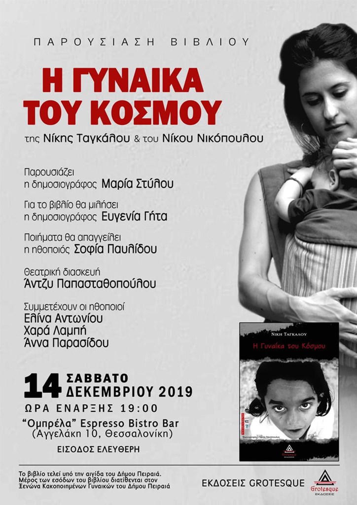 Πραγματοποιείται η παρουσίαση του βιβλίου της πολυβραβευμένης ποίητριας Νίκης Ταγκάλου και του φωτογράφου Νίκου Νικόπουλου,με τίτλο «Η Γυναίκα του Κόσμου» που τελεί υπό την Αιγίδα του Δήμου Πειραιά.