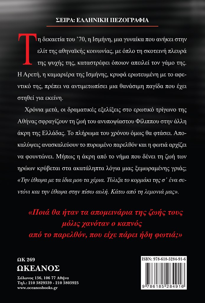 Με έναν μοναδικό συγγραφικό ρεαλισμό, η Γερακίνα Μπουρίκα, «χειρουργεί» ψυχές και χαρακτήρες, συναισθήματα και ανθρώπινα πάθη, δίνοντας ένα αναπάντεχο τέλος στο βιβλίο της που σοκάρει τον αναγνώστη.