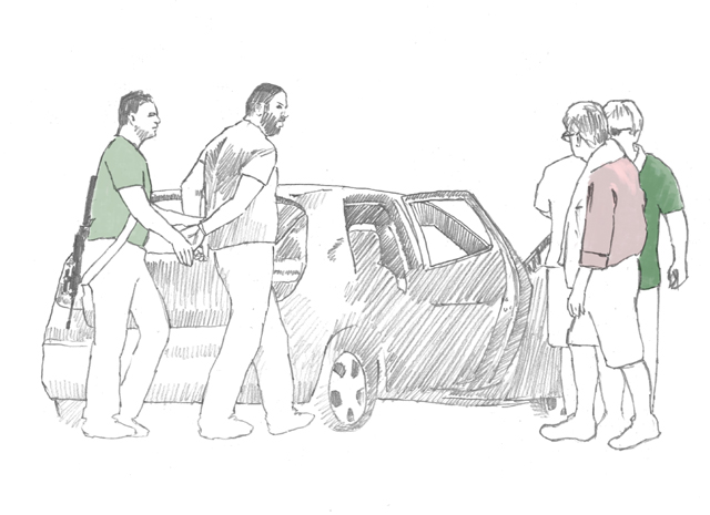 Μέχρι τη στιγμή που ξεπρόβαλαν μέσα από ένα βαν επτά πάνοπλοι αστυνομικοί. Τότε που το μπουκάλι με το τσίπουρο έφευγε από τα χέρια του αγρότη και διαλυόταν στο χώμα. Τότε που το χαμόγελο πάγωνε στα χείλη του. Καθ ότι σχεδόν σε όλες τις περιπτώσεις, στο φινάλε αυτών των ερευνών μου, οι ύποπτοι έχουν την αίσθηση ότι βρίσκονται κοντά σε μια ιδιαίτερα επικερδή συναλλαγή, ότι ίσως βγάλουν τα έξοδα μίας ζωής “από δύο κομμάτια αρχαίο μάρμαρο”. Εκεί λοιπόν που είναι αφημένοι, ανέμελοι, με κάθε επιφύλαξη τους σχεδόν ισοπεδωμένη, εκεί που πιστεύουν ότι η ζωή τους χαμογελά για μια ακόμη φορά, βρίσκονται μπροστά σε συλλήψεις, με χειροπέδες και με μεταγωγές σε κρατητήρια και δικαστικές αίθουσες. Τότε που οι τέσσερις ύποπτοι συνειδητοποιούσαν ότι είχαν “εξαπατηθεί”».