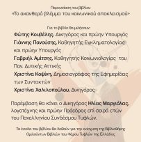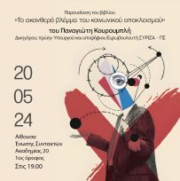 Τη Δευτέρα, 20 Μαΐου στις 19.00, στην Αίθουσα της Ένωσης Συντακτών, Ακαδημίας 20, 1ος όροφος, θα παρουσιαστεί από εκλεκτούς ομιλητές το βιβλίο του δικηγόρου, πρώην υπουργού και υποψήφιου ευρωβουλευτή με τον ΣΥΡΙΖΑ, Παναγιώτη Κουρουμπλή «Το ακανθερό βλέμμα του κοινωνικού αποκλεισμού».