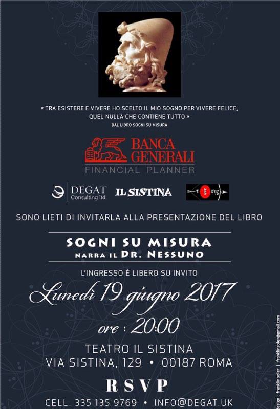 Μετά από πολλά χρόνια και έπειτα από πολύ συλλογισμό και προσπάθεια, ο διεθνούς φήμης Έλληνας γιατρός Νίκος Σικλόγλου παρουσιάζει το βιβλίο «dottor nessuno sogni su misura», στις 19 Ιουνίου στη Ρώμη.