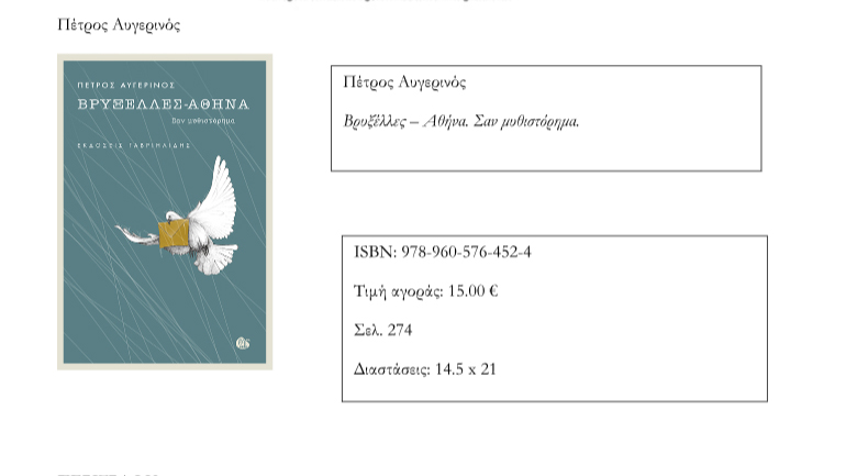 ψυχής τους. Η ωραία τους αφήγηση, ο μύθος τους. Όλο αυτό θα καταρρεύσει και θα σωριαστεί, λοιπόν. Και για να μη σωριαστεί, χρειάζεται τώρα την υπογραφή του Αρχοντάκη. Είναι εύκολο αυτό, είναι πανεύκολο να το απαντήσει αυτό. Αλλά και ποτέ του, βέβαια, δεν είχε ξαναβρεθεί σε δυσχερέστερη θέση… Ένα μυθιστόρημα που ισορροπεί στα όρια του πολιτικού, κοινωνικού και αστυνομικού θρίλερ, και παράλληλα μια παραβολή για όσα έπρεπε να ειπωθούν και ποτέ δεν ειπώθηκαν, σε μια ζωή που φεύγει και σκορπιέται, χωρίς πραγματικά να τη ζούμε.