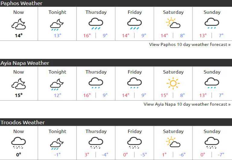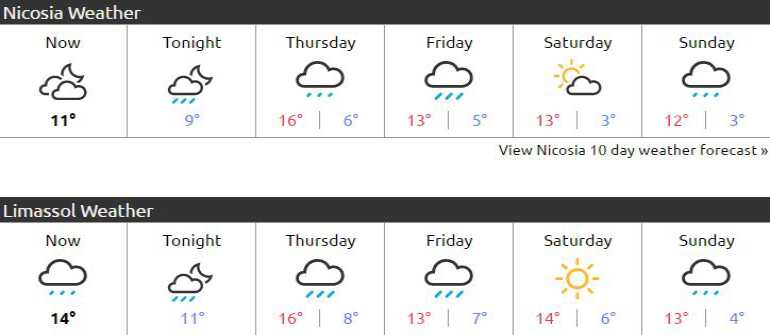 Δείτε τι καιρό θα κάνει μέχρι και την πρωτοχρονιά στην Κύπρο.