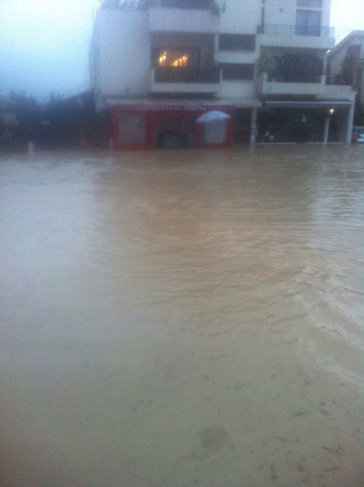 Τα περισσότερα προβλήματα παρατηρούνται σε περιοχή όπου υπερχείλισε χείμαρρος, με αποτέλεσμα τα νερά που κάλυψαν τους δρόμους να μπουν σε σπίτια.