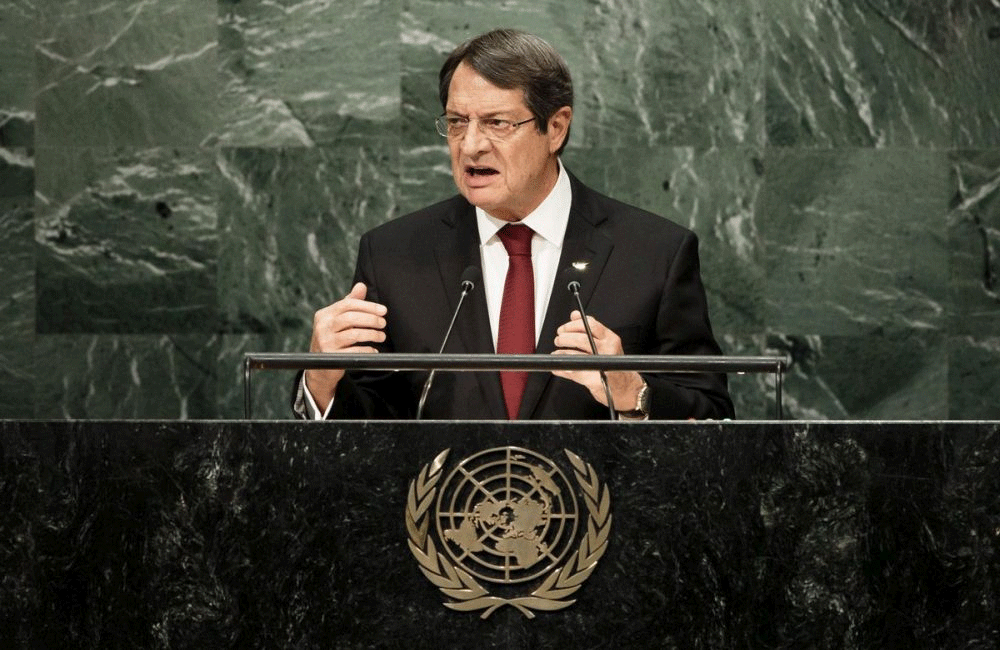 Το μήνυμα πως δεν θα δεχθεί τη διπλωματία των κανονιοφόρων, τις τακτικές εκβιασμού και τις προσπάθειες εξαναγκασμού της ε/κ πλευράς να διαπραγματευτεί υπό πίεση έστειλε, από το βήμα της 74η Συνόδου της Γενικής Συνέλευσης των Ηνωμένων Εθνών, ο Πρόεδρος της Δημοκρατίας, Νίκος Αναστασιάδης, τονίζοντας ταυτόχρονα την πλήρη αφοσίωση και στήριξή του στη νέα προσπάθεια του Γενικού Γραμματέα των Ηνωμένων Εθνών, για συνέχιση της διαδικασίας από το σημείο που σταμάτησε στο Κραν Μοντάνα.