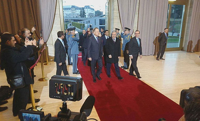 Τους ηγέτες υποδέχθηκαν ο Γενικός Διευθυντής του Γραφείου των Ηνωμένων Εθνών στη Γενεύη Μάικλ Μόλλερ και ο Έσπεν Μπαρθ Έιντε.