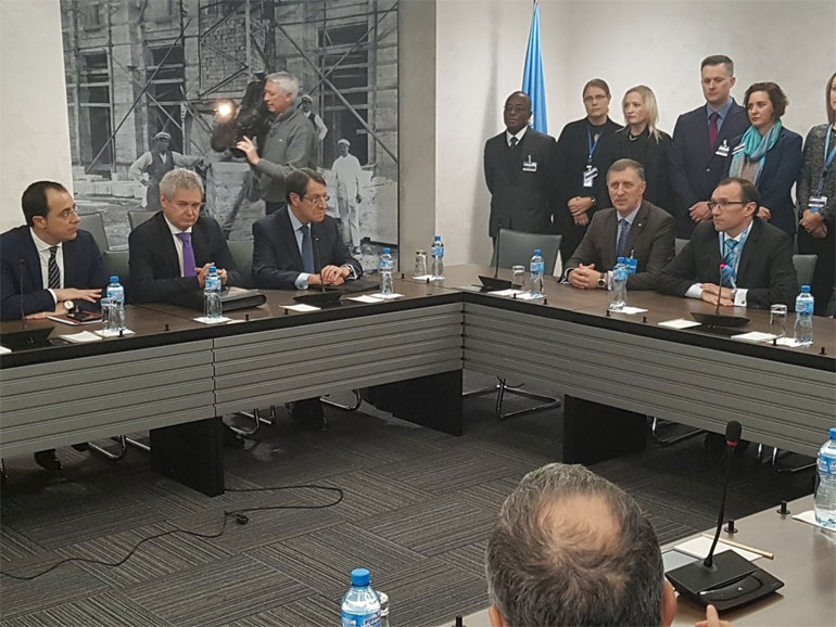 Χθες, συναντήθηκαν οι δύο ηγέτες παρουσία του Έσπεν Μπαρθ Έιντε και της Ελίζαμπεθ Σπέχαρ, των διαπραγματευτών Αντρέα Μαυρογιάννη και Οζντίλ Ναμί, του κυβερνητικού εκπροσώπου Νίκου Χριστοδουλίδη και του εκπροσώπου του κ. Ακιντζί, Μπαρίς Μπουρτζού.