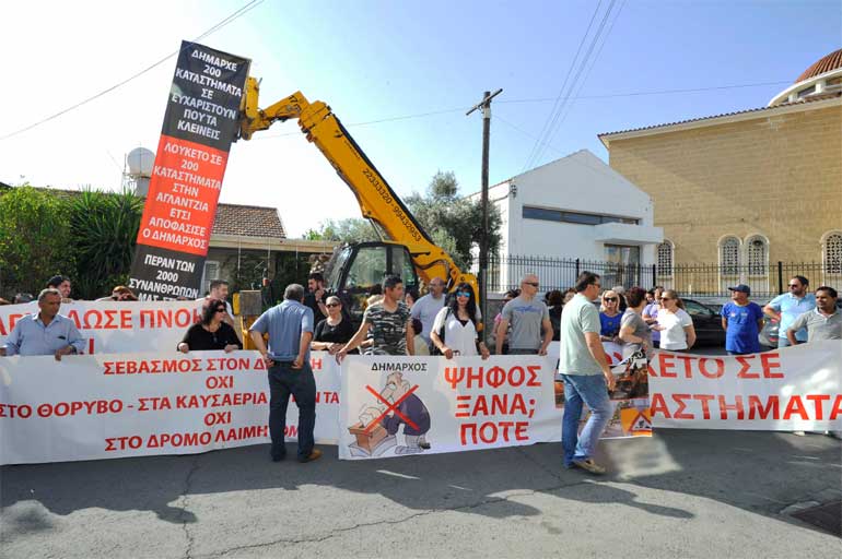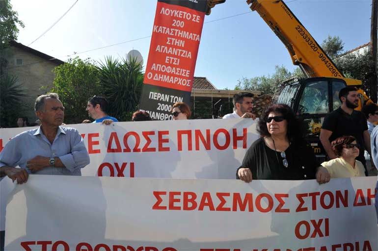 Η εκδήλωση πραγματοποιήθηκε εναντίον «των καταστροφικών και εν κρυπτώ σχεδιασμών του Δημάρχου και του Δημοτικού Συμβουλίου επί των πιο πάνω λεωφόρων».
