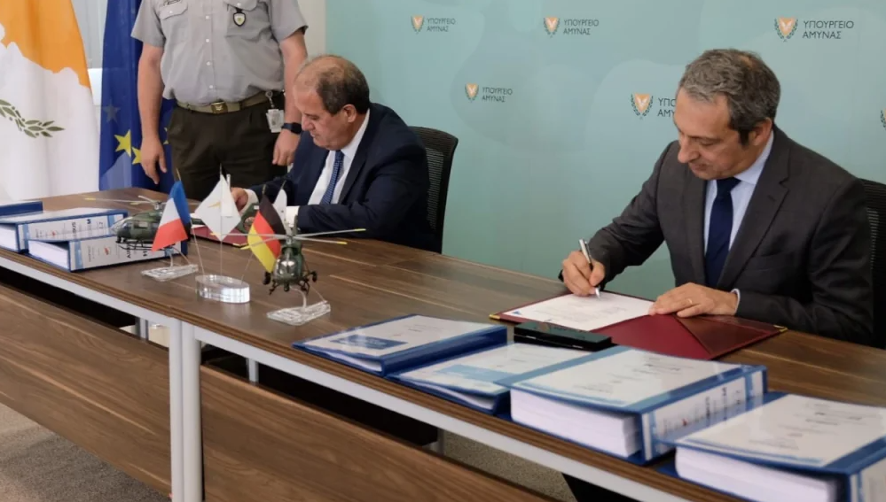 Συμφωνία μεταξύ της Κυπριακής και της Γαλλικής Δημοκρατίας για προμήθεια 6 Ελαφρών Επιθετικών Ελικοπτέρων H145Μ της εταιρείας Airbus Helicopters, με δικαίωμα εξάσκησης προαίρεσης για απόκτηση ακόμη 6, υπογράφηκε σήμερα (24/6) στο υπουργείο Άμυνας της Κύπρου.