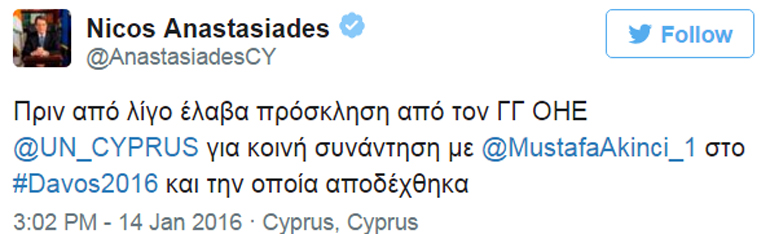 Ο Πρόεδρος της Κυπριακής Δημοκρατίας προέβη σε σχετική ανακοίνωση στο twitter: