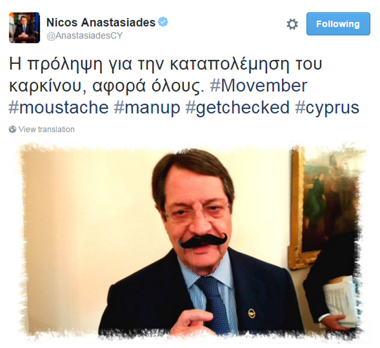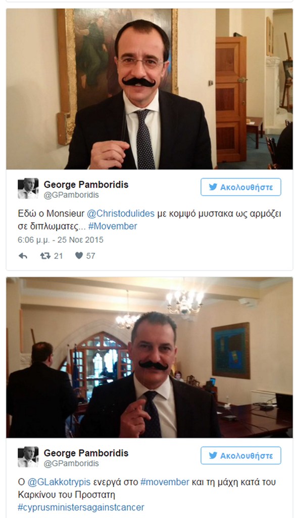 Ο λόγος για τον Πρόεδρο της Κυπριακής Δημοκρατίας, Nίκο Αναστασιάδη και το υπουργικό συμβούλιο που έχουν αναρτήσει στον προσωπικό τους λογαριασμό στο Twitter φωτογραφίες με μουστάκια.