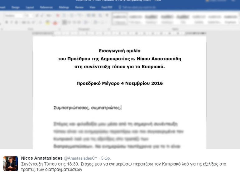 Ο κ. Αναστασιάδης θα απαντήσει σε ερωτήσεις επτά διευθυντών ειδήσεων ελληνοκυπριακών τηλεοπτικών σταθμών, παγκύπριας εμβέλειας. Όπως αναφέρει σε ανάρτησή του στο twitter, «στόχος μου θα είναι να ενημερώσω περαιτέρω τον λαό για τις εξελίξεις στο τραπέζι των διαπραγματεύσεων».