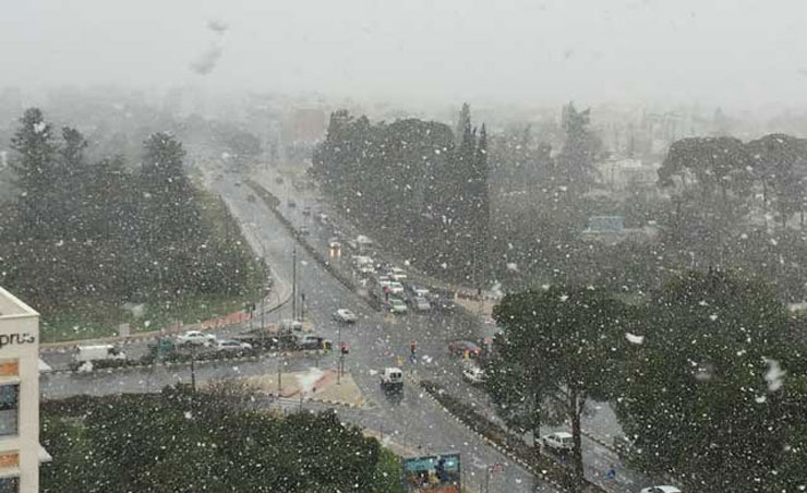 Νιφάδες χιονιού πέφτουν από το μεσημέρι και σε περιοχές της Λευκωσίας.