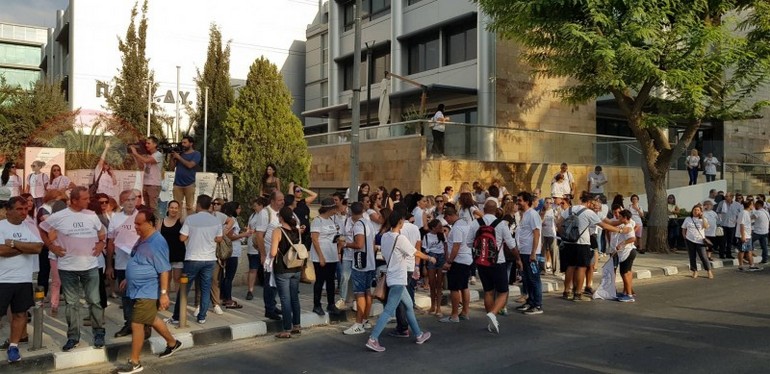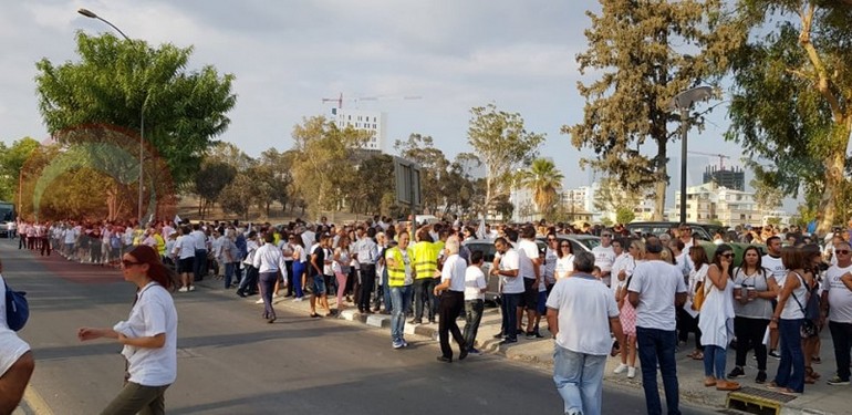 Με τα συνθήματα: “Αγώνας διαρκείας, αυτή είναι η απάντηση στον υπουργό Παιδείας” και “Κάτω τα χέρια απ’ την Παιδεία” χιλιάδες Κύπριοι εκπαιδευτικοί της μέσης και της δημοτικής εκπαίδευσης πραγματοποίησαν απόψε διαδήλωση διαμαρτυρίας έξω από το Προεδρικό Μέγαρο στη Λευκωσία. Στην πορεία πήραν μέρος και εκπρόσωποι άλλων οργανώσεων για να εκφράσουν την υποστήριξη τους στους εκπαιδευτικούς. Η εκδήλωση ήταν μια από τις μαζικότερες κινητοποιήσεις των τελευταίων χρόνων.