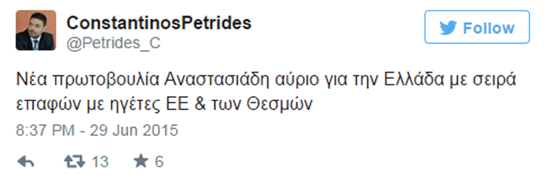 Για το ίδιο θέμα έκανε ανάρτηση στο Twitter και ο υφυπουργός παρά τω προέδρω Κωνσταντίνος Πετρίδης.