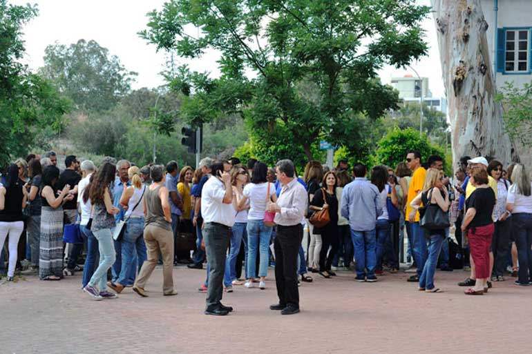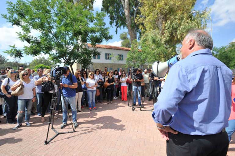 Διαμαρτυρία έξω από το ΥΠΟΙΚ πραγματοποιούν οι απολυθέντες εργαζόμενοι των Κυπριακών Αερογραμμών.
