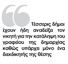 Μπορεί στις περισσότερες περιοχές της Επικράτειας να κορυφώνεται ο προεκλογικός πυρετός, ενόψει των αυτοδιοικητικών εκλογών, ωστόσο τέσσερις δήμοι έχουν ήδη αναδείξει τον νικητή για την κατάληψη του γραφείου της δημαρχίας! Ο λόγος; Αντί για πολλούς υποψηφίους, υπάρχει μόνο ένα διεκδικητής της θέσης.