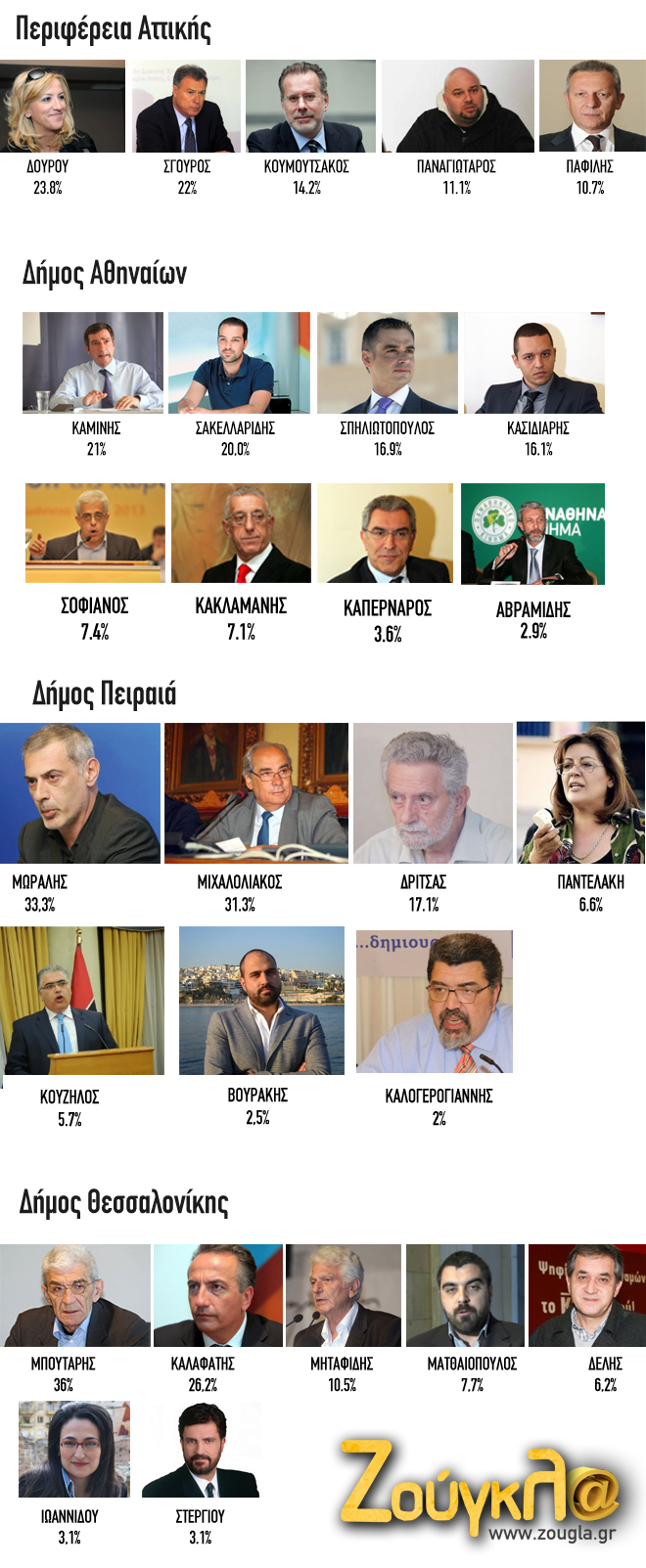 Στο λιμάνι του Πειραιά η μεγάλη μάχη θα δοθεί ανάμεσα στους Γιάννη Μώραλη και Βασίλη Μιχαλολιάκο, ενώ στη Θεσσαλονίκη ευρύ είναι το προβάδισμα του Γιάννη Μπουτάρη, ο οποίος αναμένεται να κερδίσει εύκολα στις εκλογές της επόμενης Κυριακής.