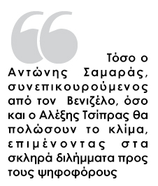 Είναι προφανές ότι στην εβδομάδα που μεσολαβεί μέχρι την Κυριακή 25 Μαΐου, τόσο ο Αντώνης Σαμαράς, συνεπικουρούμενος από τον Ευ. Βενιζέλο, όσο και ο Αλέξης Τσίπρας θα πολώσουν το κλίμα, επιμένοντας στα σκληρά διλήμματα προς τους ψηφοφόρους.
