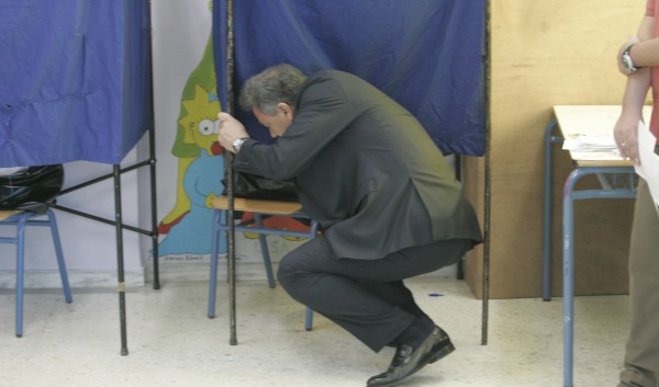Ένα απρόοπτο συνέβη στον Γιάννη Σγουρό την ώρα που έβγαινε από το παραβάν στο εκλογικό κέντρο στη Νέα Σμύρνη.