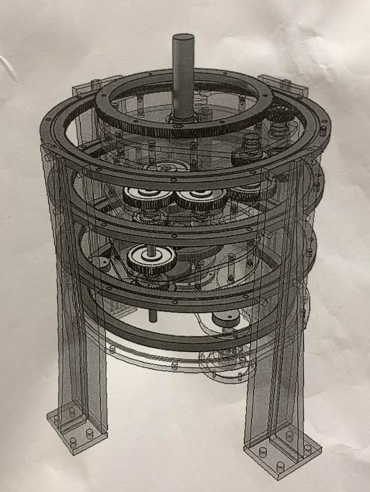 Η συσκευή του περιλαμβάνει εσωτερικά ένα πολύπλοκο σύστημα γραναζιών που επιτυγχάνουν την διαχείριση σημαντικής ποσότητας ενέργειας με μίνιμουμ απώλειες και αποτελεί ουσιαστικά έναν «γραναζωτό μειωτήρα στροφών με ανακυκλοφορία ισχύος με εκτεταμένη χρήση της μεθόδου κατεργασίας μέσω ηλεκτροδιάβρωσης σύρματος», όπως μας εξηγεί ο Βασίλειος Σπιτάς, Αναπληρωτής Καθηγητής του ΕΜΠ στη Σχολή Μηχανολόγων Μηχανικών, ο οποίος αντιλήφθηκε από την πρώτη στιγμή τις προοπτικές της εφεύρεσης.