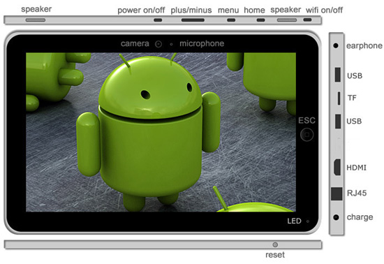 Ένα υπερπλήρες Tablet PC με διάσταση οθόνης 10.1” και υποδοχή για MicroSD εξωτερική μνήμη, υποστηρίζοντας χωρητικότητα έως 32GB και φυσικά WIFI 802.11b/g, HDMI, 2xUSB, ενσωματωμένο GPS με εξωτερική κεραία, webcam, μικρόφωνο, κάμερα.