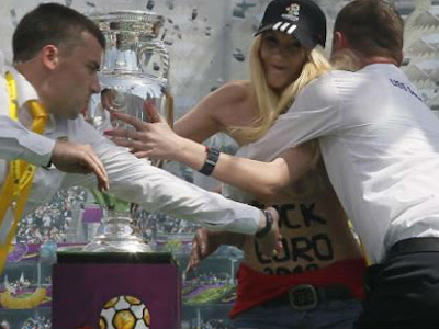 Νέα επίθεση δέχθηκε από γυμνόστηθες ακτιβίστριες, το τρόπαιο του EURO 2012.