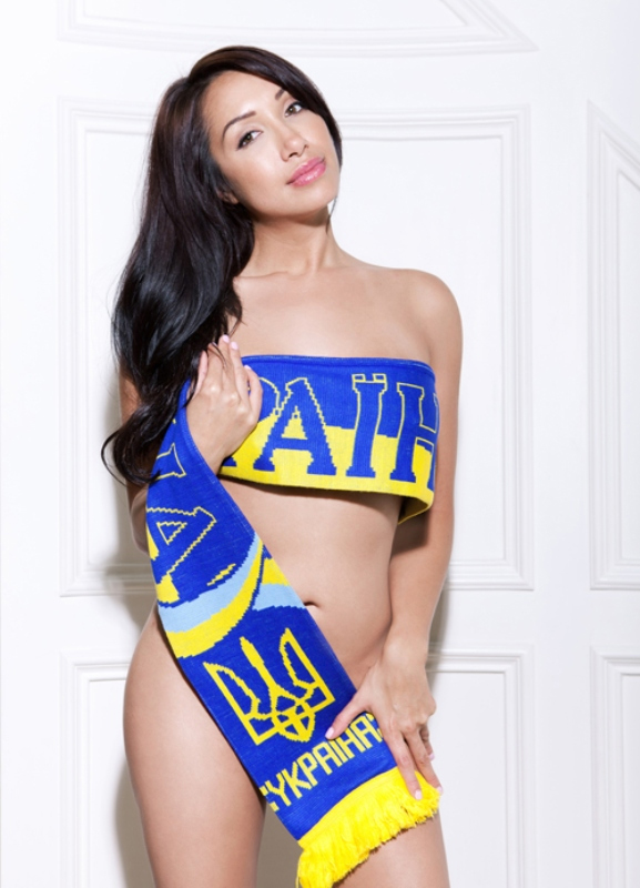 Μία μελαχρινή κοπέλα φωτογραφίζεται για την Ουκρανία, μία ξανθιά για την Ολλανδία, ενώ μελαχρινή είναι και η υποστηρίκτρια της Σουηδίας.