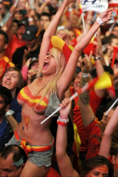 Ντελίριο ενθουσιασμού προκάλεσε στους Ισπανούς φιλάθλους η κατάκτηση του Euro 2012 από το συγκρότημα του Βιθέλντε Ντελ Μπόσκε στο Κίεβο.