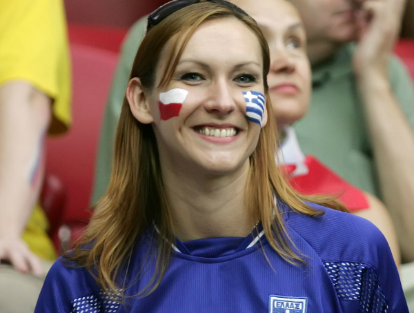 Η Ελλάδα στο χθεσινό παιχνίδι με τη Ρωσία έπαιξε μεγάλη… μπάλα όχι μόνο στο γήπεδο, αλλά και στις εξέδρες του εθνικού σταδίου Βαρσοβίας, όπου υπήρχαν αρκετές λαμπερές παρουσίες σε γαλανόλευκο φόντο...