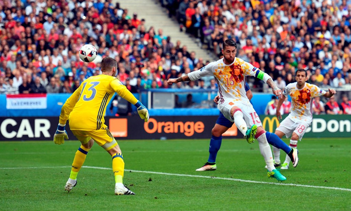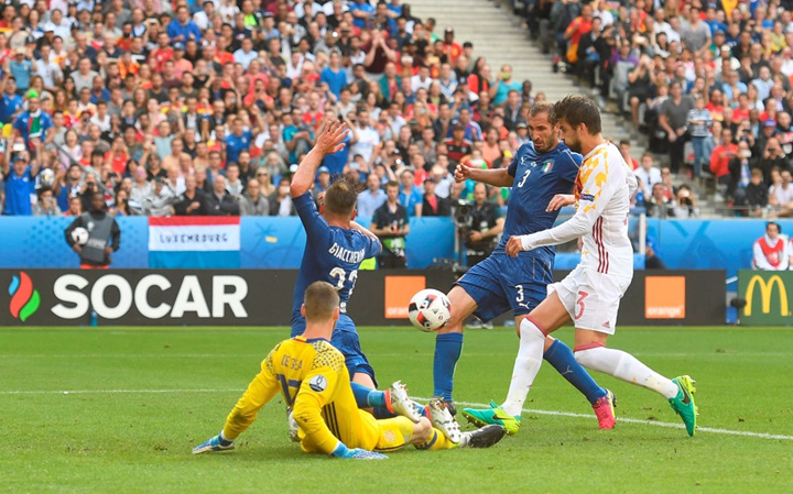 Η Ιταλία αποδείχθηκε ανώτερη και επικράτησε 2-0 της Ισπανίας στο «Σεντ Ντενί» στο ματς για την φάση των «16» του Euro της Γαλλίας και προκρίθηκε στην προημιτελική φάση του τουρνουά. Τα γκολ για την «σκουάντρα ατζούρα» πέτυχαν οι Κιελίνι (33’) και Πελέ (90’).