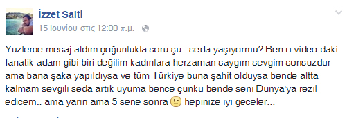 «Με ρωτούν, είναι η Seda ζωντανή; Μπορεί στο βίντεο να φαίνομαι φανατικός, όμως αγαπώ και σέβομαι τη γυναίκα μου, ακόμη και αν το βίντεο το παρακολούθησε όλη η Τουρκία και ολόκληρος ο κόσμος στη συνέχεια».