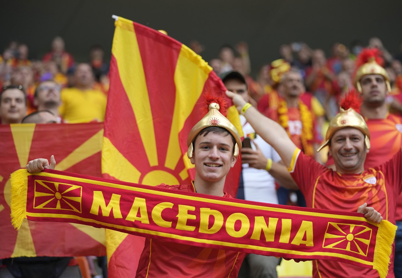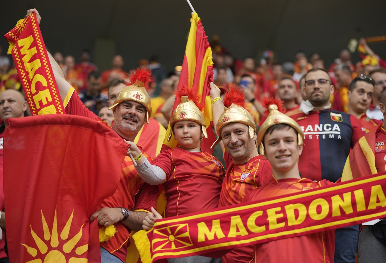 Με περικεφαλαίες που παραπέμπουν στον στρατό του Μεγάλου Αλεξάνδρου, πανό με τον Ήλιο της Βεργίνας και κασκόλ που γράφουν μόνο «Macedonia» βρίσκονται στη Νάσιοναλ Αρίνα του Βουκουρεστίου, οι οπαδοί της Βόρειας Μακεδονίας για να παρακολουθήσουν τον αγώνα της εθνικής τους ομάδας με την Αυστρία.