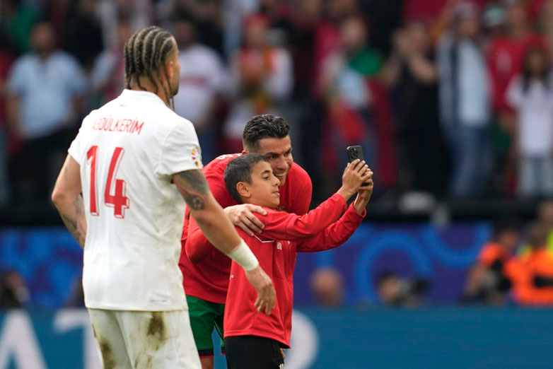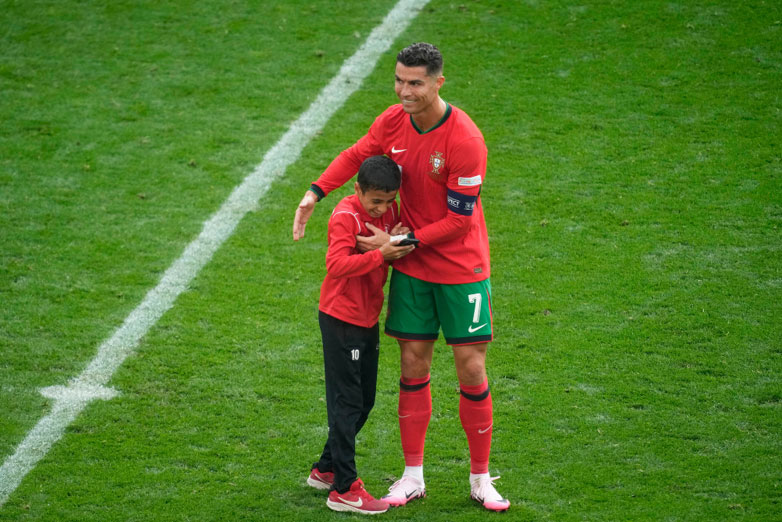 Cristiano Ronaldo poses for selfie with kid pitch invader #Euro2024 pic.twitter.com/s0spNtN0qm