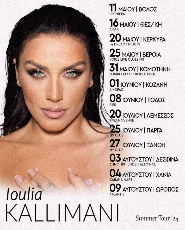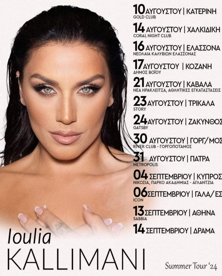 Με τεράστια επιτυχία και την μεγάλη αγάπη του κόσμου, εξελίσσεται το φετινό summer live tour της Ιουλίας Καλλιμάνη, με τις εμφανίσεις της, ανά την Ελλάδα και την Κύπρο, να είναι sold out.