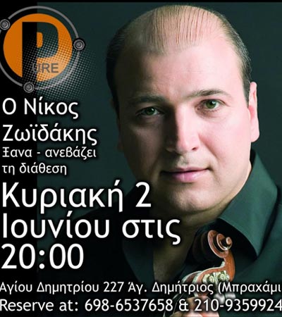 Στο φιλόξενο περιβάλλον του Pure Cafe Bistro, που έχει το απόλυτο στέκι τα τελευταία τέσσερα χρόνια, αναμένεται να εμφανιστεί ο Νίκος Ζωιδάκης.