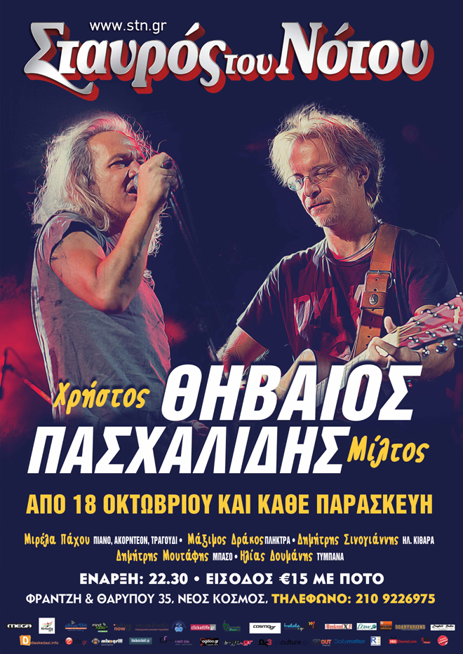 Ξεκινώντας από τις 18 Οκτωβρίου, και για κάθε Παρασκευή, ο Χρήστος Θηβαίος και ο Μίλτος Πασχαλίδης ανεβαίνουν στην Κεντρική Σκηνή του Σταυρού του Νότου και υπόσχονται τις πιο μελωδικές νύχτες του φετινού χειμώνα.