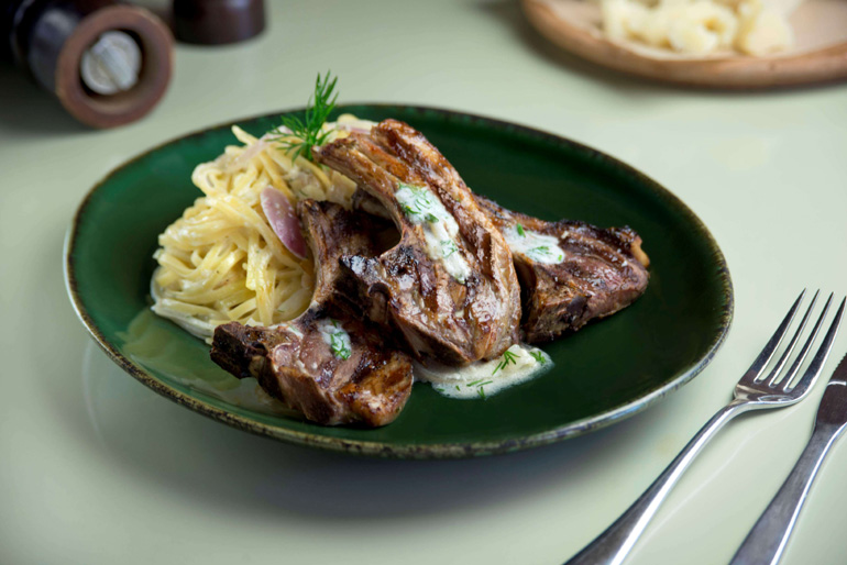 • AGNELLO ALLA SARDA: Παϊδάκια αρνίσια στη σχάρα. Συνοδεύονται από bavette σε σάλτσα φινόκιο, γιαούρτι και λεμόνι