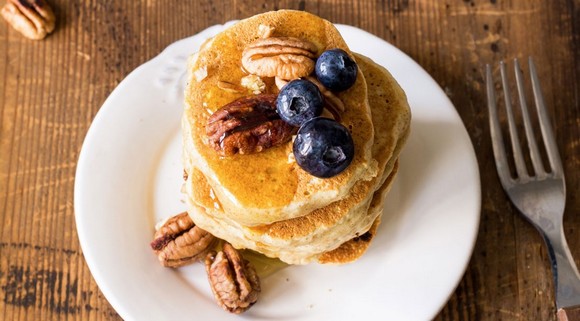 Τα πλεονεκτήματα: Αυτές οι pancakes έχουν μία μέτρια δόση πρωτεΐνης χωρίς να έχουν ένα τόνο υδατανθράκων, τέλειες για αυτούς που ψάχνουν να διατηρήσουν μυϊκό ιστό όταν προσπαθούν να σφίξουν. Η μέτριας και αργής πέψης πρωτεΐνες βοηθούν για μια σταθερή ροή αμινοξέων έτσι ώστε να μείνετε πιο αναβολική.