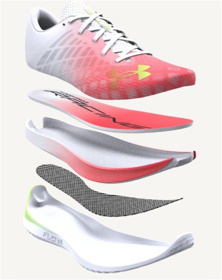 Με πλάκα ανθρακονήματος (carbon plate) πλήρους μήκους στην ενδιάμεση σόλα του, τοποθετημένη σε μαλακό αφρό ενδιάμεσης σόλας που συμπιέζεται και αναπηδά για επιπλέον προώθηση, προσφέρει εκπληκτική επιστροφή ενέργειας στον δρομέα ενώ η τεχνολογία UA FLOW προσδίδει αντικραδασμική προστασία και επιπλέον έκρηξη.