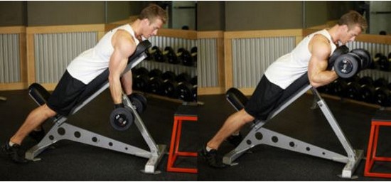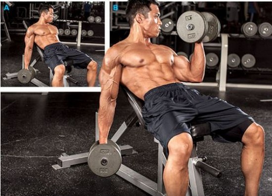 Το πρώτο πράγμα που έχεις να κάνεις είναι να βάλεις τον πάγκο σε κλίση κατά 60%. Κράτησε τα βαράκια με τις παλάμες προς τα μέσα και με αργές κινήσεις σφίξε τον δεξί σου δικέφαλο μέχρι να φτάσει στο επίπεδο του στήθους. Καθώς ανυψώνεις το βαράκι, σταδιακά γύρισε το χέρι σου εξωτερικά ώστε η παλάμη σου να βλέπει προς το πάτωμα. Καθώς σηκώνεις το βαράκι, διατήρησε το επάνω μέρος των χεριών σφιχτά επάνω στο σώμα σου. Με αυτή την κίνηση θα δουλέψεις τους δικέφαλους σου.