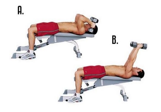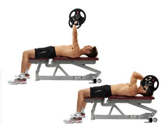 Θα ξαπλώσεις σε έναν πάγκο και θα κρατήσεις μια μπάρα πάνω από το στήθος σου. Χωρίς να στρέψεις το επάνω μέρος των χεριών σου προς τα μπροστά ή προς τα πίσω, λύγισε τους αγκώνες και με αργές κινήσεις χαμήλωσε το βάρος προς το κεφάλι σου. Σταμάτησε όταν οι βραχίονες σου είναι κάτω από την ευθεία, αλλά χωρίς να υπάρχει κίνδυνος για το μέτωπο σου. Με αυτή την κίνηση δε θα δυναμώσεις μόνο τους βραχίονες και τους τρικέφαλους, αλλά και το στήθος σου.