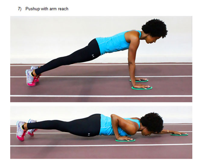 Καθώς βρίσκεστε στη θέση των pushup και χαμηλώνετε το σώμα σας εκτείνεται το ένα χέρι μπροστά σας μέχρι να ”κλειδώσει” ο αγκώνας στο κατέβασμα του άλλου χεριού. Επαναλάβετε με το άλλο χέρι.